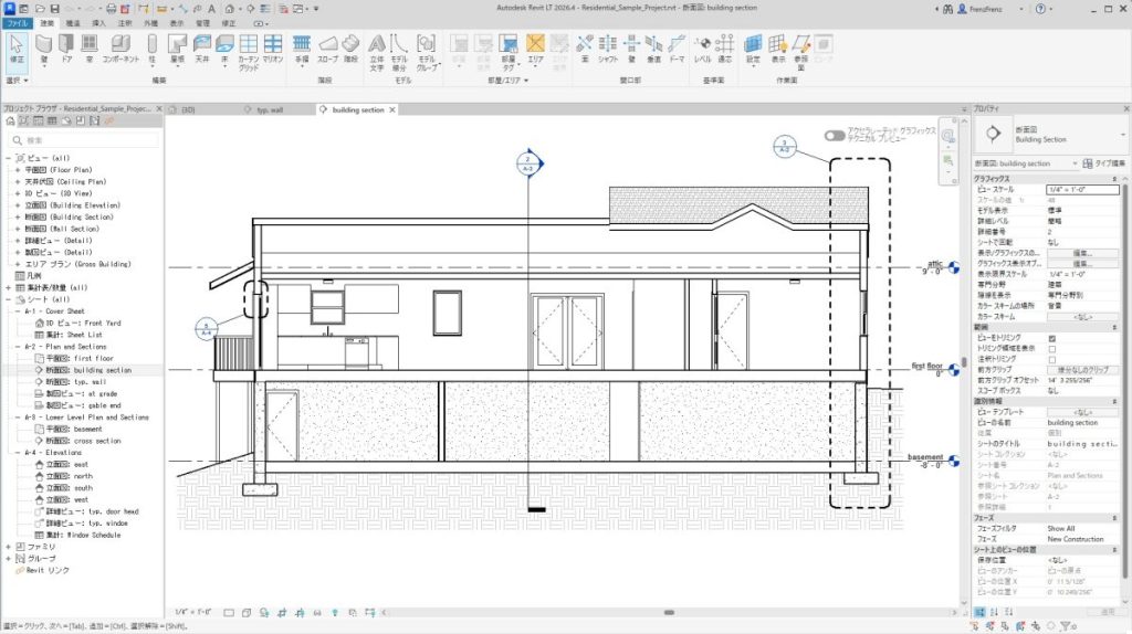 - REVIT LTの断面図、矩計図、部分詳細図、パースの作成
