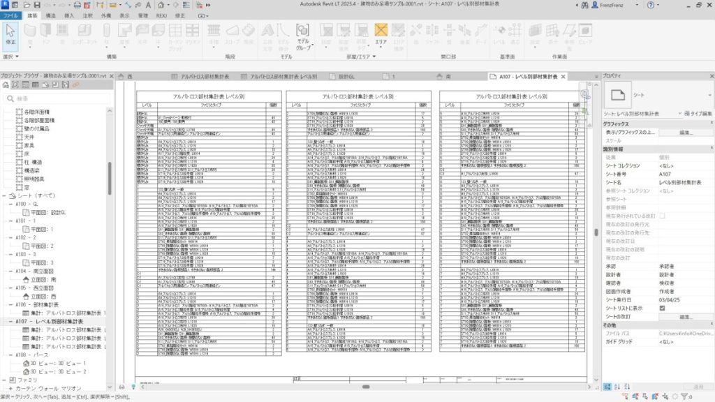 - REVIT LTで集計表を使った部材拾い、建具表、リスト表を作成する